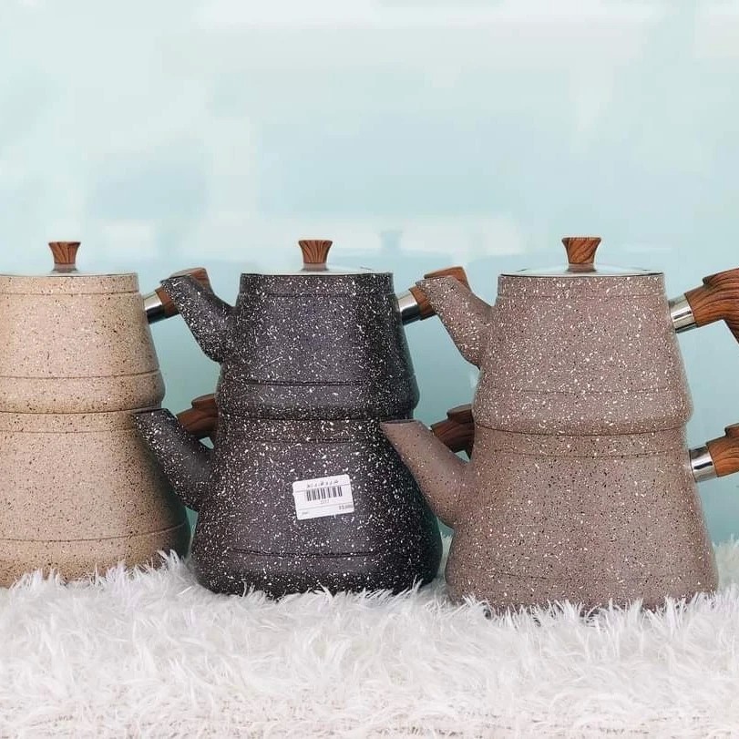 کتری و قۆری تیڤاڵ مارکەی zio بە سێ ئەلوانی جیاواز بە دوو مۆدێل دەسکی جیاواز بە ئاڵتونی و ساجی ئێستا بەردەستە لامان