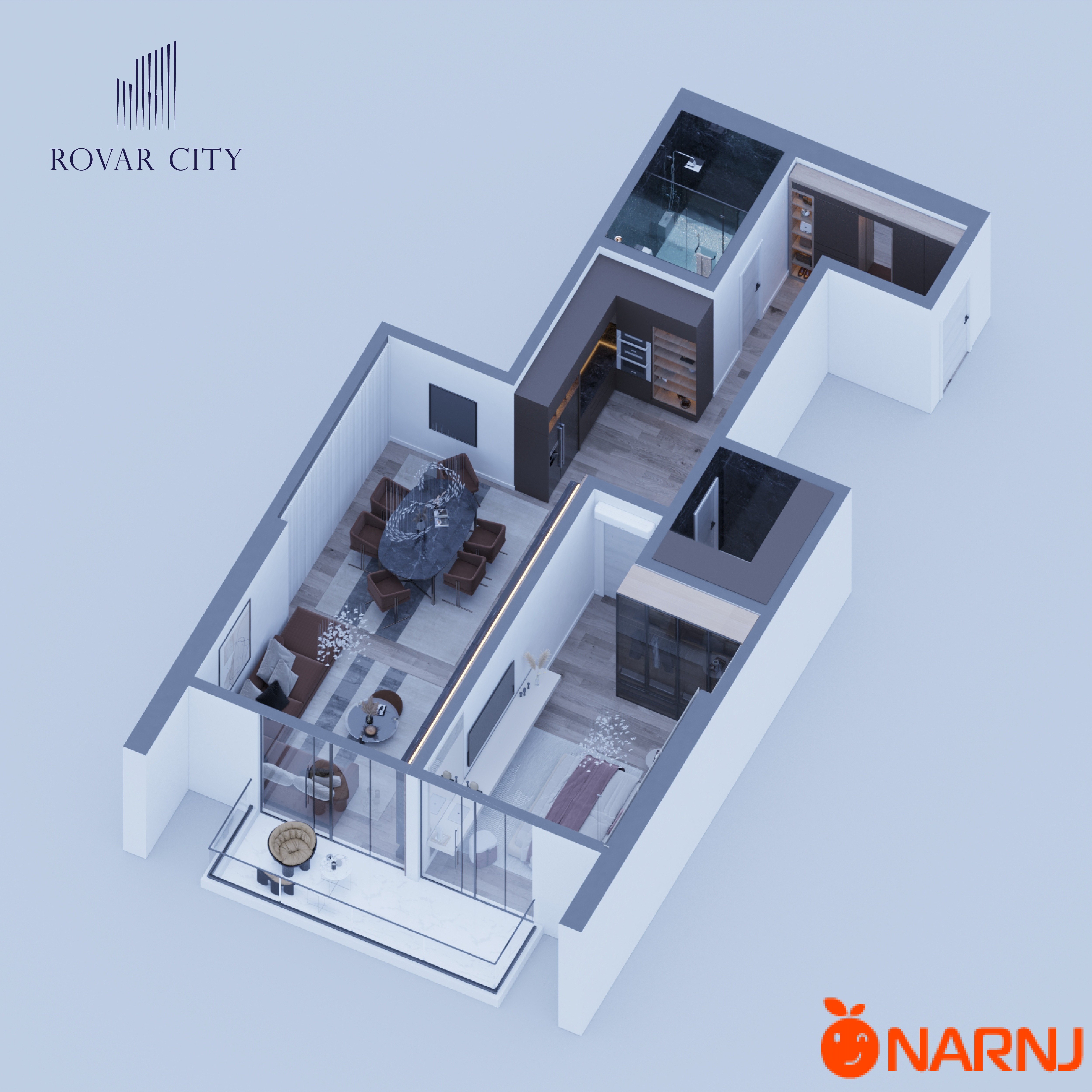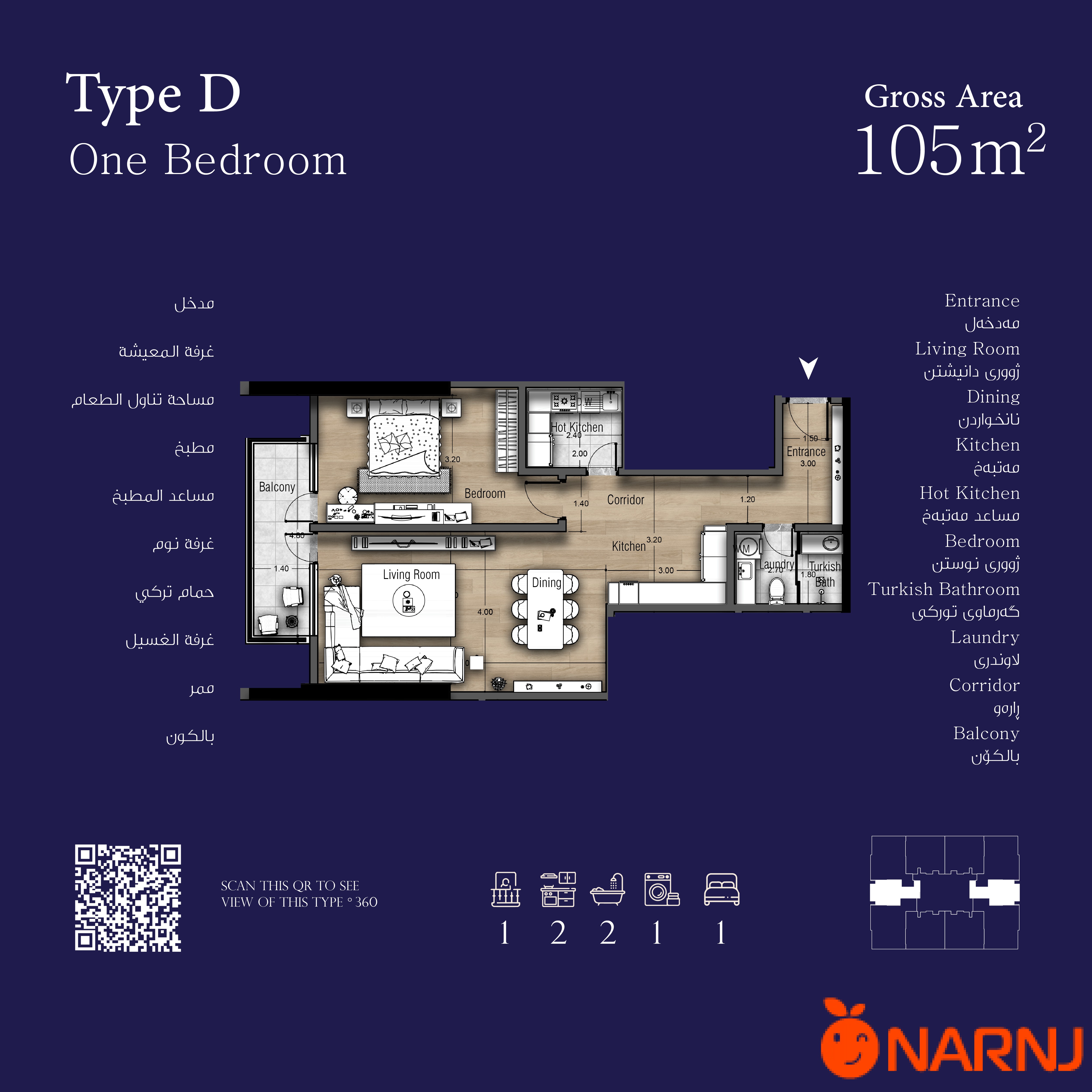 تایبەتمەندییەکانی شوقەی 105 مەتر دوجا: